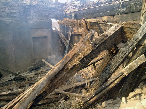 Bina 1 Aralık 2011’de ise bilinmeyen kişiler tarafından dört ayrı yerden başlatılan bir yangınla yakıldı. Yangına 2 Aralık günü müdahale eden Çin itfaiyesi, sağlam kalan ham tuğladan yapılmış duvarları da su sıkarak yıktıktan sonra arta kalan taş yığınlarını ve iç döşemede kullanılan yangından kurtulan ahşap sütün ve kaplamaları, tarihi eser olarak muhafaza altına alacaklarını söyleyip, götürdü.