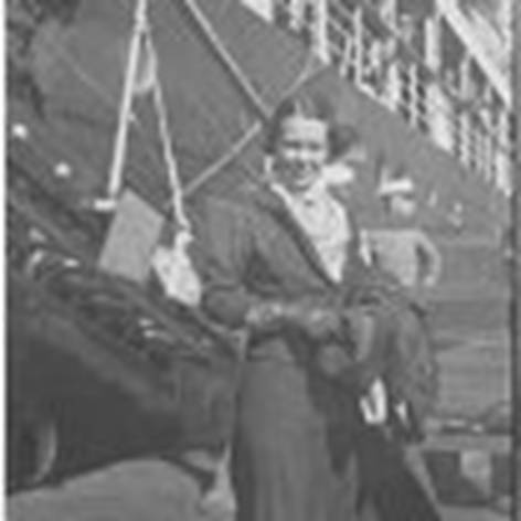 10 Temmuz 1935 te Rusya ya gitmek üzere İstanbulda bineceği Çiçerin vapurunun önünde.