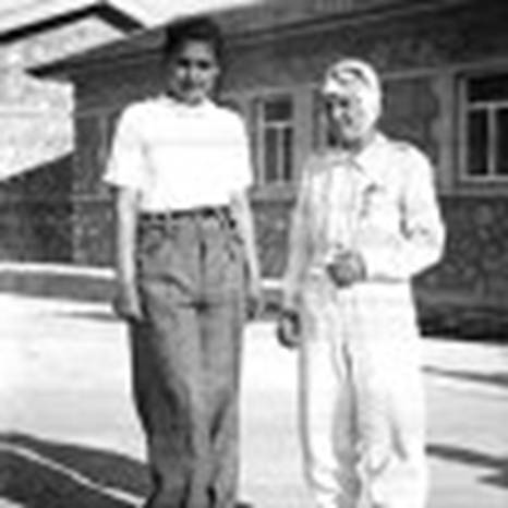 İnönü yüksek planör kampında öğrencisi Edibe SUBAŞI ile çekilmiş bir fotoğraf. Edibe Subaşı da hocası gibi birçok başarıya ve ilke imza atacaktır.