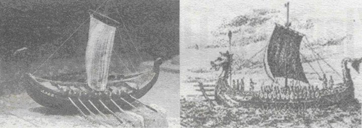 Asov Müzesi’nde bulunan eski gemi modeli ve gerçek Viking gemisini canlandıran bir resim.