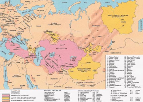 Bugünkü Özbekistan-Kırgızistan-Türkmenistan-Kazakistan-Tacikistan ve Çin işgali altında bulunan Doğu Türkistan ile “Afganistan Türkistan’ı” diye garip bir adla da adlandırılan Güney Türkistan; İdil-Ural, yani Tataristan ve Başkurdistan Cumhuriyetleri toprakları Türklerin öz yurdudur.