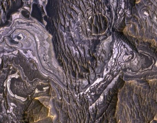 NASA’lı bilim insanlarından Candy Hansen, resimde görülen ağaç benzeri yapıların aslında buharlaşan karbon dioksitten oluşan buz örtüler olduğunu belirtti. Hansen, kış mevsiminde kum tepelerini örten buz örtünün yaz sıcaklarında eridiğini ve tepelerden aşağıya aktığını söyledi.