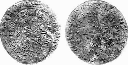 Resimde Festos diskinin bir yüzünü görmekteyiz.