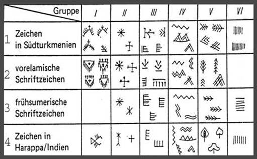 1- Güney Türkmenistan (Anau)dan bulunmuş simgeler (M.Ö.4000)