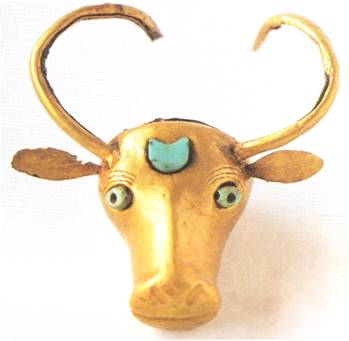 Saf altın ve yakuttan yapılmış Öküz başının heykeli