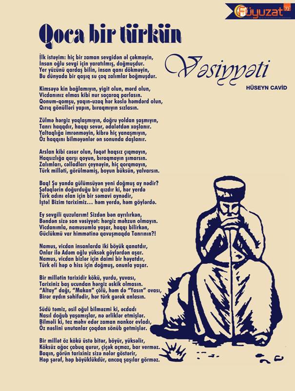 H.Cavid`in bedii-felsefi, sosyal-siyasi görüşlerini yansıtan muhteşem eserlerinden biri de “İhtiyar bir Türkün vasiyeti” şiiridir.