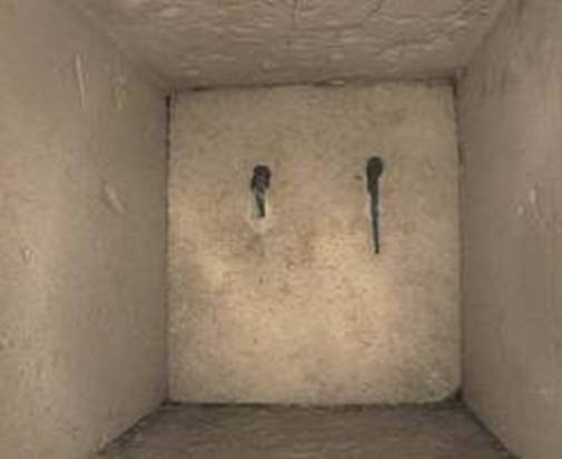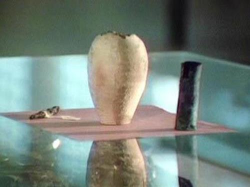 Bu kaya parçasının üzeri doğal kristallerle kaplanmıştır. İçinde bir boşluk bulunmuştur. Bu boşlukta, malzemesini metal ve porselenin oluşturduğu garip bir cisim bulunmuştur.