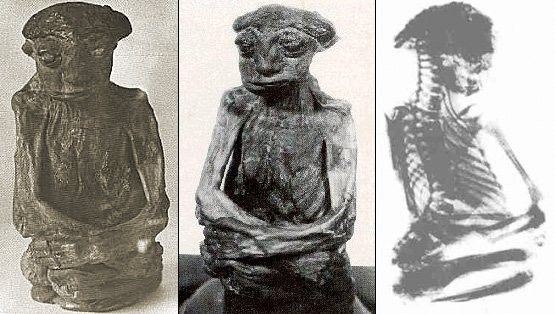 1932 yılında Pedro Dağlarında bulunmuş bir mumya. (ABD, Wyoming eyaleti, Casper şehrinin 60 mil güney batısı). Mumya koyu bronz renginde ve oldukça buruşmuş vaziyettedir. Hayattayken boyu 35 cm’ yi geçmiyordu !!! Röntgen ışınlarıyla yapılan incelemede bu canlının ağırlığının 5,5 kg olduğu ortaya çıkarıldı. Cinsiyeti erkek ve bütün dişleri yerinde. Öldüğünde aşağı yukarı 65 yaşında idi. Mumya 350 gr ağırlığındadır. Alnı çok aşağıdadır. Ezik bir burnu ile büyük ve geniş burun delikleri vardır. Çok geniş ağzı ile incecik dudakları bulunmaktadır. Bu yaratık bilinen insan türlerinden çok daha küçüktü. Bazı araştırmacılara göre bu çok küçük boyutlarda olan bir ırkın üyesiydi.