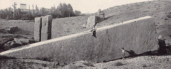 Lübnan ‘ın Baalbek şehri yakınlarındaki işlenmiş dev kaya blokları. Bu taşlar binlerce yıl öncesinde buraya getirilmişti. Resimde gördüğünüz parça 1050 ton ağırlıkta ve 25 metre uzunluğundadır. Bu ” momolit ” takma adlı yekpare blok dünya üzerindeki işlenmiş en büyük taş bloktur. Soru şu: Bu taşları kimler ve nasıl buraya getirebilmişti?