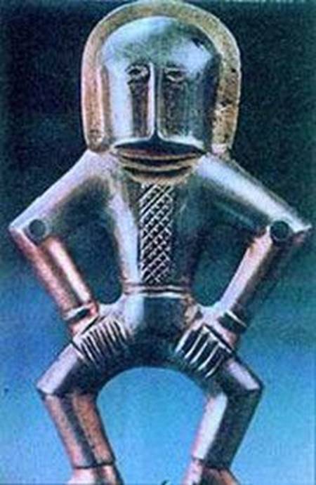 Bu altın maket Kolomb öncesi döneme ait bir mezarda bulunmuştur. Yaklaşık 1800 yıllıktır. Görünüşe göre bir uçağın doğru ölçekli maketi gibi duruyor. (Delta kanatlı, motor yerine sahip, pilot kabini var, kuyruk kanatları bile doğru şekilde tasvir edilmiş.) Güney Amerika ‘da buna benzer bir çok eser bulunmuştur.