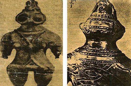 Tarih öncesine ait küçük japon heykelcikleri. Yakalarında civata taşıyan bu heykelcikler bir tür uzay başlığı ve elbisesi taşımaktadır. Hatta bunlardan biri çok büyük gözlük takmaktadır. Sanki güneş ışığından korunmak ister gibi.