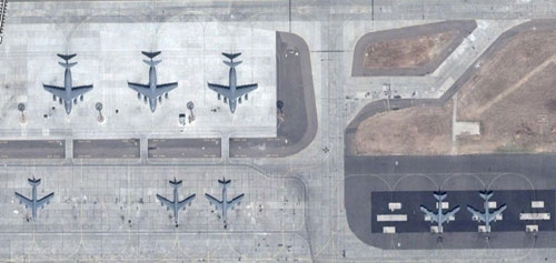 Manas Üssünde dokuz adet havada benzin nakli yapabilen uçak ve kargo uçakları da var.