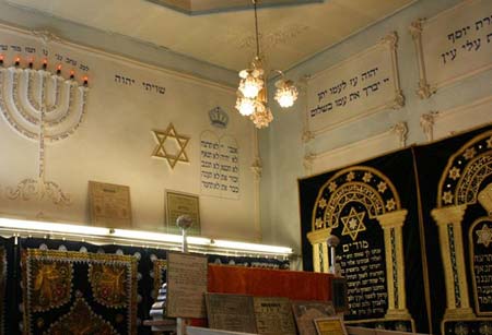 Bir Sinagogdaki Jakin Boaz Sütunlu Süslemeler ve Yedi kollu Şamdan Menorah