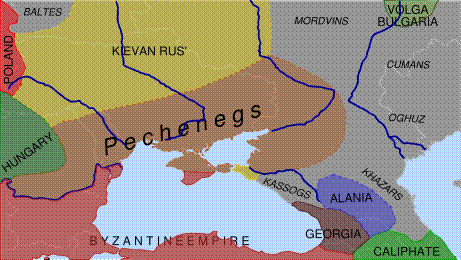 Karadeniz’in kuzeyinde yüzyıldan fazla rahat hayat yaşayan Peçenekler’in huzurunu yine bir Türk kavmi olan Uzlar[16] bozdu. Aslında onlarda Kuman-Kıpçaklar‘ın önünde tutunamayarak, İtil nehrini geçmişler ve Don boylarını işgale başlamışlardı. Bu durumda Peçenekler de Dnyeper’e doğru kaydı. Zaten devamlı göç halinde bulunan Peçenekler’den kalabalık gruplar, Orta Avrupa’ya yani Macaristan’a doğru kaymaya başladılar (943-972). Esas kütle ise bugünkü Baserabya denilen bölgeye gitti. Peçenekler’in Karadeniz’in kuzeyini terk etmesini fırsat bilen Ruslar Knez Yaroslav idaresinde Peçenekler’e ağır bir darbe indirdiler (1036). Bu savaştan sonra Peçenekler bir daha Rusları tehdit etmemişlerdir[17].