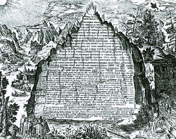 Orada altın bir tahtın üzerinde oturan yaşlı bir adam gördüm. Elinde zümrüt bir tablet tutuyordu ve tabletin üzerinde “Doğa’nın varoluşu buradadır” diye yazıyordu. Önünde duran kitapta ise “Bütün varolanların yaradılış sırrı ve her şeyin nedenlerinin bilimi buradadır.” diye yazıyordu.