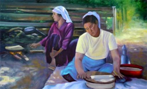 Bozkırın ortasında bacası dumanlı bir köy evidir.