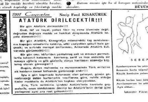 15. Necip Fazıl Kısakürek ‘ Atatürk Dirilecektir’, Büyük Doğu , sayı 9