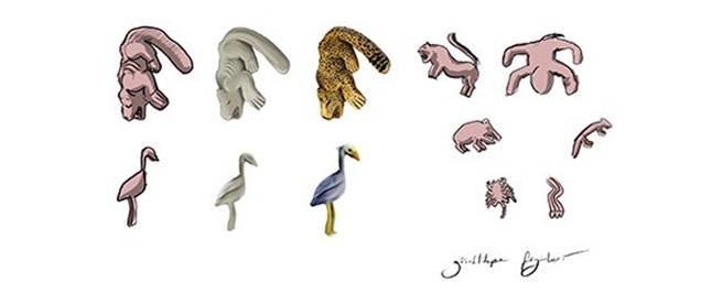 Boğa, yaban domuzu, tilki, yılan, turna ve yaban ördekleri en sık görülen hayvan tasvirleridir. Taşlar üzerine kazınan bu hayvan tasvirlerinin yanında üç boyutlu kabartma şeklinde yapılan başka betimlemeler de tespit edildi. Bunlardan en önemlisi “T” biçimindeki sütunun yan tarafında aşağı doğru iner biçimde tasvir edilen aslan kabartmasıdır.