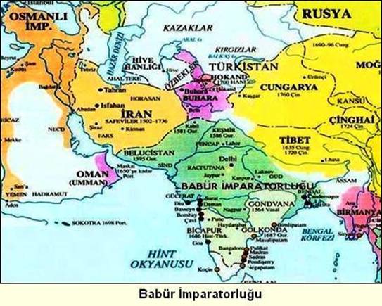 1526’da ise Hindistan’da yeni bir devir başladı. Babur’un liderliğinde Delhi iktidarına yeniden Türkler geçti. 1858’e kadar Kuzey Hindistan’da iktidarda kalan bu hanedanın atası Babur-Şah Moğollardan bahsederken; “Şu uğursuz Moğol yağmacıdır. Yağma yapacak birilerini bulamazsa döner kendi milletini yağmalar” diyecek kadar kendini Moğol’dan ayırmasına, Türkçeyi konuşup, Türk kültürünü temsil etmesine rağmen; batılı yazarlar, Babür’ü ve Babürlüleri Moğol yapmıştır. Babür Türk İmparatorluğu Babür Şah ile başlamış ve Hümayun, Ekber, Cihangir, Şah Cihan ve Evrengzib Şah ile devam etmiştir. Bugün Hindistan’daki önemli tarihi eserlerin büyük çoğunluğu Babürler dönemine aittir.