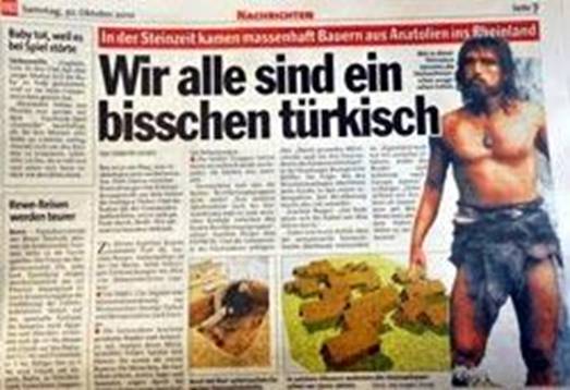Alman “Kölner Express” gazetesi, “Hepimiz biraz Türküz” başlığıyla verdiği haberde, Mainz Üniversitesinden antropolog Prof. Dr. Joachim Burger’in Taş Devri döneminden kalan iskeletler üzerinde yaptığı araştırma sonucuna göre, o dönemin insanlarının Batı Anadolu’dan Avrupa’ya göç ettiğinin bilimsel olarak tespit edildiğini yazdı.