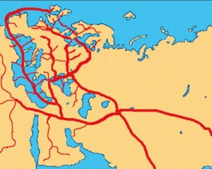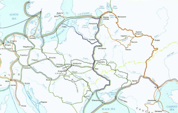 Avrupa’nın güney kıyılarının dağlık olması (Pirene, Alpler ve Balkan dağları), Akdeniz yoluyla gelen ticaret mallarının orta ve kuzey Avrupa’ya geçmesinde önemli engel teşkil etmektedir. Bu nedenle Hazar Denizinin kuzeyinden geçen ve Avrupa’daki su yolları ile, Baltık ve Kuzey denizini kullanan ticaret yolu, orta ve kuzey Avrupa ülkeleri için daha fazla önem taşımaktadır.