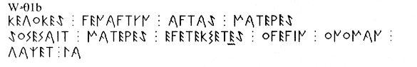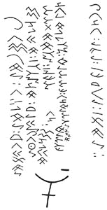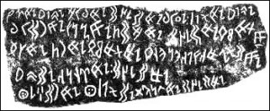 Antalya Elmalı timülüsünden çıkan eski Frig yazısında kullanılan Runik semboller ve yazıya bir örnek (Antalya müzesi)
