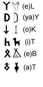 Gök veya Kök kelimesindeki sembol K nın simetrisi de olabilir. Bu durumda ortaya kuş şeklinde bir piktogram çıkar ki, bu da okuma bilmese bile kişinin “kuş“ aradığını karşıdakinin anlamasına yardımcı olur.