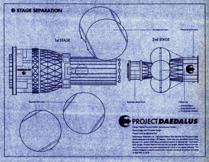 Daedalus, dünya yörüngesinde yapılıp başlangıçta kütlesi 54.000 t olacaktı. Bunun 50.000 tu yakıt, 500 tu da bilimsel malzemeydi. Roket, iki kademeli olacaktı. Birinci basamağı iki yıl süreyle kullanılacak ve uzay aracını ışık hızının % 7,1’ine çıkaracaktı (0,071 c). Bundan sonra birinci kademe fırlatılır ve ikinci kademe, 1,9 yıl çalışarak roketin hızını ışık hızının %12’sine çıkarır (0,12 c). Bu süreden sonra motor, 46 yıllık yolculuk süresince durdurulur. Motorların yapıldığı çan şeklindeki çıkışlarıyla destek yapısı, etkisinde olduğu aşırı derecede büyük sıcaklık aralığından dolayı (3 – 1900 K) kriyojenik sıcaklıklara dahi tahammül eden berilyum kullanılacaktı.