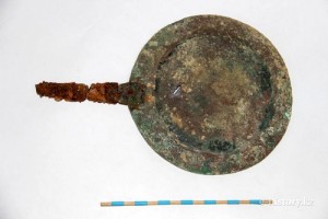 1 numaralı Kök-Kaynar höyüğünden bulunan üçüncü parça bronz aynadır. Bu eşya M.Ö. II. yüzyıla tarihlenmektedir. Çapı 15 cm, ayna sapının uzunluğu ise 8 cm’dir. Aynanın dairesel şeklinin kenarlarındaki çerçevenin eni 2 cm ve yüzeyinde çıkıntı vardır. Aynanın diski ile kenarları birbirine birleştirilmiştir.