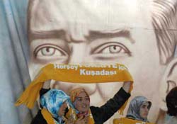Dün Kuşadası’nda çekilen bu fotoğraf da, Türkiye’nin gerçek yüzünü anlatması bakımında ‘simge’ niteliğinde bir fotoğraf olma özelliği taşıyor. Özellikle üniversitelerde başörtüsüne özgürlük isteyen öğrencilerin, ‘Cumhuriyet ilkelerine karşı geldikleri için notlarının kırılabileceği’ yollu imalarla tehdit edildiği bu günlerde bu fotoğraf hem içerdeki kamuoyunun, hem de Batı’nın ‘Başörtülü kadınlar’ ve ‘Atatürk Türkiyesi’ arasında yansıtılmaya çalışıldığı gibi bir uçurum olmadığının en güzel kanıtını oluşturuyor.