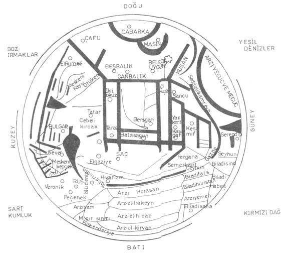 11 Bu şehrin zamanımızda Akbeşim, Suyab ve Burana şehir kalıntılarından hangisine karşılık geldiği noktasında farklı görüşler vardır. Kuvvetli olan kanaat ise Balasagun’un AkBeşim diye bilinen şehir kalıntılarına karşılık geldiğidir. Bkz. Cezar, s. 28, not. 1.