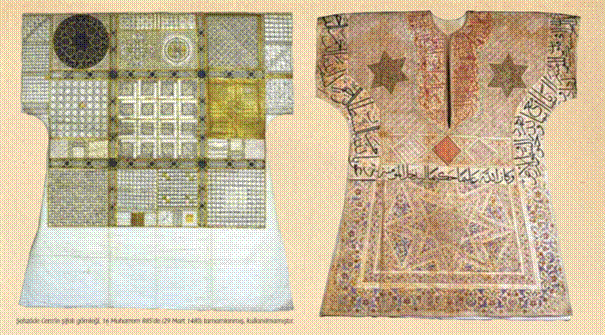 1978 yılından bu yana Topkapı Sarayı Müzesi’nde Osmanlı tekstili ve padişah giysileri üzerine çalışan Doç. Dr. Hülya Tezcan, tılsımlı gömlekleri grafik sanatının zirvesi olarak tanımlıyor. Gömleklerin üzerine celi, sülüs, kufi yazıyla işlenen ayetler ve dualar kare, yıldız gibi geometrik şekillerin ya da Kadem-i Saadet, Süleyman Mührü, Zülfikâr, lale gibi anlamlı motiflerin içine yazılmış. 15-20. yüzyıl arasında hazırlanan padişah giysilerini içeren saray koleksiyonunda Peygamber Efendimizin nübüvvet mührü, Hilye-i Şerif ve O’nun için yazılan Kaside-i Bürde’yle bezenmiş dört gömlek yer alıyor. Ancak diğer gömlekler üzerinde de yine Peygamberimize ait Kadem-i Saadet ve Nalın-ı Saadet motifleri kullanılmış.