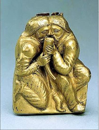 Kardeşleşme andı törenlerinde kardeş olan kişilerin kanlarının içkiye karıştırılmasına ilk kez İskitlerde rastlanılmaktadır. Ant içecek olanlar bir kupanın içerisine kanlarını karıştırmaktaydılar. Bunun için sivri bir cisimle kan çıkaracakları yeri delmekte ya da kılıçla hafif bir şekilde çizmekteydiler (Herodotos IV: 70). Aynı şekilde İskitlerin “kan andı törenlerinde kardeş olacak iki kişinin kanlarını karıştırmaları hakkında Lucianos da bilgi vermektedir. Burada kan kardeşi olacak kişilerin kanlarının bir içkiye karıştırılmasından söz edilmemektedir. Burada şahıslar parmaklarının ucunu kesip kanı bir sağrağa (kâse) akıtmakta, birbirine karışmış olan kana kılıçlarının ucunu batırarak, kana batırılmış kılıç uçlarını dudaklarına götürmektedirler (Lucianos 1944: 212). Dolayısıyla İskitlerde kan kardeşi olan kişilerin kanını karıştırmalarını hem Herodotos hem de Lucianos açıklamaktadırlar, ancak birincisinde karıştırılan kanlar içkiyle, muhtemelen kımızla içilmekte, ikincisinde karıştırılan kan kılıç ucuyla dudağa götürülerek yalanmaktadır.