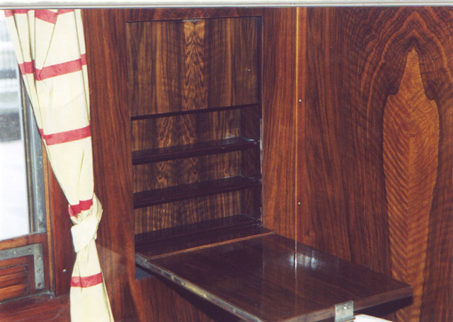 Atatürk’ün yatak odasının bulunduğu kompartman. Yatak katlanıp koltuk haline gelebiliyor. Başucunda görünen yarım küre okuma lambası. Komidin ve sehpa da o günlerin zerafetini yansıtıyor.