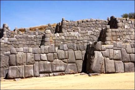 İnkaların Sacsayhuaman Kalesi, Peru kenti Cuzco’nun yaklaşık 3500 m. yukarısındadır. Bu kaleyi kuranların İnkalar olduğu kesin, çünkü burada da onların büyük ve kenarlarda yuvarlak kesme taşları kullanılan yapı tarzı göze çarpmaktadır. Bu tarz yapılar, İnka İmparatorluğu’nun yayıldığı bütün bölgelerde göze çarpmaktadır. Kalenin üst kısmında heybetli bir taş çember vardır. Bu çember bir zamanlar takvim işlevi görmüş olmalı. Büyük bir kulenin tabanı da olabilir.