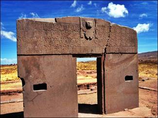 Aynı derecede akla durgunluk veren bir yer daha Puma Punku; burası kullanılan teknik açısından çok daha etkileyici. Bugünkü Bolivya’da Titica Gölü’nün yakınlarında 4000 m. yükseklikte. Bu kadar yüksekliğe çıkmayı göze alan birkaç turist de Puma Punku’dan net bir şey göremezler çünkü onları daha çok yakınında bulunan ve güneş kapısıyla ünlü Tiahuanaco’ya götürürler. Bu güneş kapısı 3 m. yükseklikte ve 4 m. genişliktedir, ilginç yanı tek bir monolitik bloktan oluşmuş olmasıdır. 48 garip figür ortada bulunan bir tanrının iki tarafını süsler. Şimdi hayatta olmayan Prof. Schindler-Bellamy, burada yıllarca çalıştı, bu figürlerde bir Dünya ve Ay Takvimi ortaya çıkardı; bu takvim inanılır gibi değil, 20.000 yıllık bir zaman çevrimini kapsıyordu. Başkaları da bu figürlerde yanlış anlaşılmış bir teknolojinin şematik betimlemelerini gördüler.
