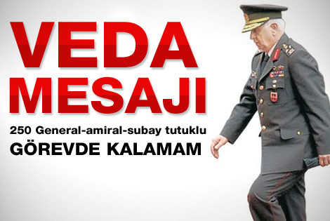Bu durumun önlenememesi ve yetkili makamlar nezdinde yapılan girişimlerin dikkate alınmaması Genelkurmay Başkanı olarak personelimin hak ve hukukunu koruma sorumluluğumu yerine getirmeme engel olduğundan, işgal ettiğim bu yüce makamda göreve devam etme imkanını ortadan kaldırmıştır.