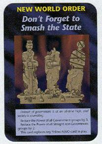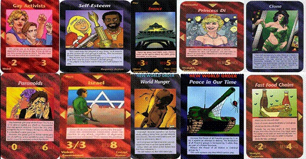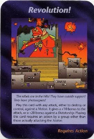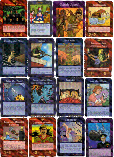 Ortadoğu’yu kasıp kavuran Arap Baharı’nın arka planı çok tartışıldı. İsyan hareketi dış güçler tarafından desteklendi mi, yoksa Arap halkları kendi özgür iradesiyle ayaklanıp kimsenin dolmuşuna binmeden isyan hareketini devam ettirdi? İlk kartta bir diktatörün resmi var, evler klasik Arap evi ve sokaklarda çatışmaların savaşın izleri.. Kartın üzerinde “bu kartı bir ülkeyi kontrol altında tutma ya da işgal etmek için kullanın” yazıyor. İkinci kartta ise askerler isyancılara saldırıyor. Yani iki kart beraber yorumlandığında dış güçler Ortadoğu topraklarına müdahale etmek için kargaşa yaratıyor algısı oluşuyor.
