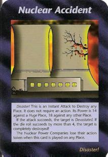 Japonya’da “doğal olmayan afetin” ardından meydana gelen tsunami Fukuşima nükleer santralinin elektrik sistemine zarar verdi. Çernobil felaketinden sonra en büyük ikinci nükleer kaza olarak tarihe geçen olayı anlatan bir oyun kartı da mevcut. Kartta Fukuşima’ya yönelik bir ibare yok ama doğal afetleri anlatan kartlarla incelendiğinde Japonya’daki nükleer kazayla bağlantı kurulabilir.