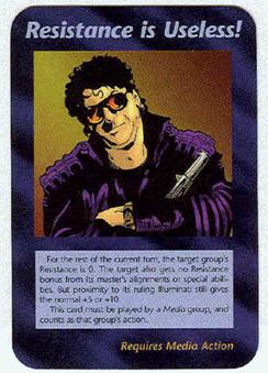 “Karşı koymak işe yaramaz.” Kartın başlığında yazan cümle bu. Kartın üzerindeki resim de Michael Jackson’a benzerliğiyle dikkat çekiyor. Michael Jackson kliplerinde ve demeçlerinde illuminati örgütüne karşı geldiği ve bu yüzden medya tarafından taaaruza tutulup itibarsızlaştırıldıktan sonra öldürüldüğü iddia edilmişti.