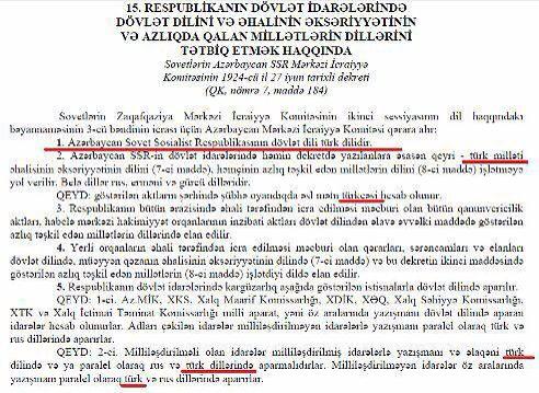 Halbuki, 1919-cu,1924-cu ilə aid bəlgələrdə və 1929-cu ilə aid olan kitablarda Türk dili və sonrasında 1934 -cü və 1941 ci illərə aid şəxsiyyət vəsiqələrdə və pasportlarda milli mənsubiyyətimiz Türk milləti olaraq qeyd edilir. Sonradan müstəqillik zamanında, mərhum liderimiz, dövlət başçımız Əbülfəz Elçibəyin dönəmində də kitablarin üzərində “Türk dili ” deyə özəlliklə qeyd edilirdi.