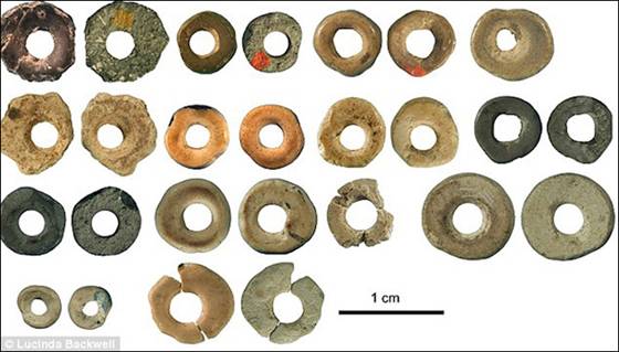 Güney Afrika’daki bir mağarada bulunmuş, devekuşu yumurtasından yapılmış boncuklar 44.000 yıl öncesine tarihleniyordu. F: Lucinda Backwell