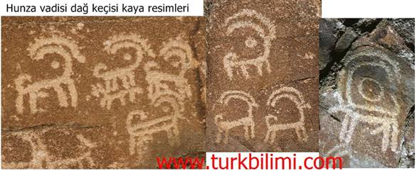 Hunza vadisi dağ keçisi kaya resimlerinde üreme tamgaları ve sürü başı koçlar; Türklerde koç tamgası çok kullanılan bir tamgadır.